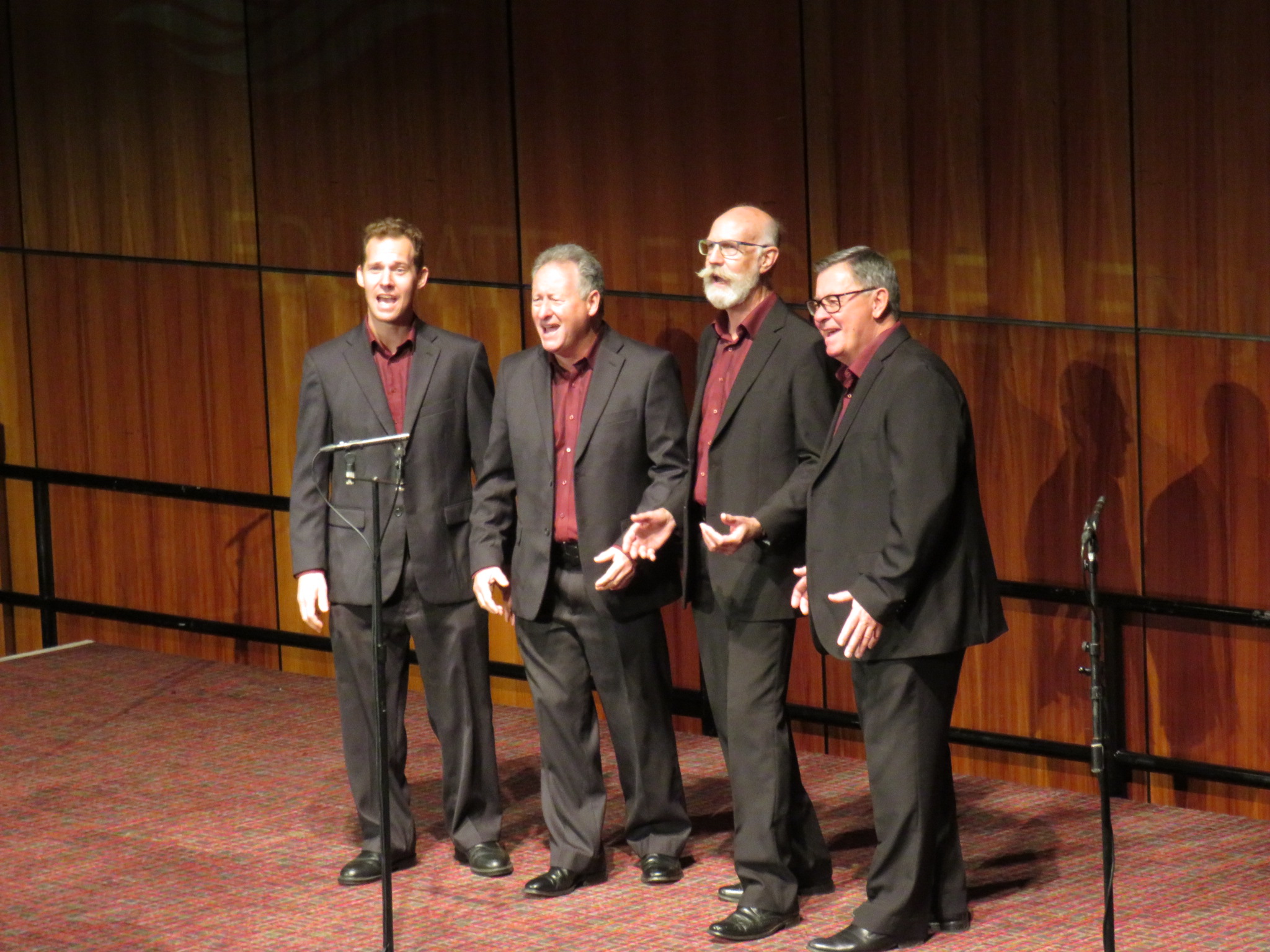 Due to some good local promotion, a large number of locals turned up excitedly to learn and sing a popular song, in the barbershop style. We witnessed some top-line barbershop harmony, from not only Signature, the phenomenal champion quartet from the US, but also from quartets and choruses from around Australia. Audiences could not help but be impressed, with the variety of performances that exuded beautiful harmony, deep emotion, and a good spattering of humour. For me, that tinge of humour started right from the onset, when my wife and I were booking in- the reception clerk asked me if I was part of that large ‘hair-dressing group’ that was visiting!