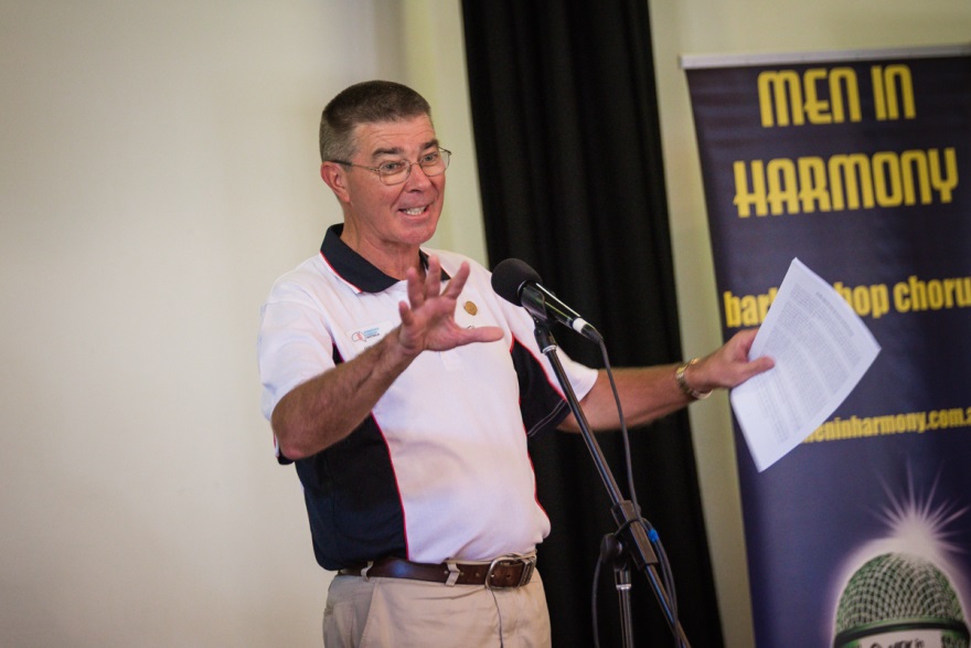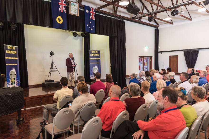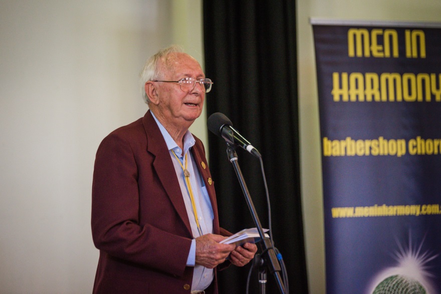 Andy returned fire with a stirring rendition of the Sir Arthur Conan Doyle poem, “Bendigo” which enthralled the crowd. In his speech Andy said that he only started barbershop singing when he retired from full-time work. He remembered the start of AAMBS back in 1985 and the book he wrote “The First Twenty Years of AAMBS, 1985-2005”. After the event Andy spent some time signing copies of his book for his adoring fans. Andy also gave recognition to his wife Gwen, who has always supported him in his barbershop activities.